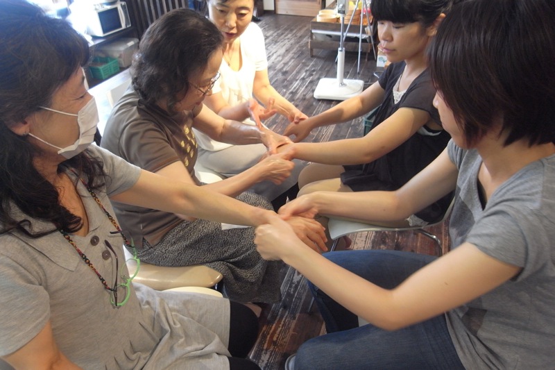 今日は、アロマテラピー・ハンドマッサージ入門講座を開催しました。NPO法人日本アロマテラピー活動サポートセンターのおおば先生から、アロマテラピーの基礎知識と簡単なハンドマッサージの手順を教わりました。みなさん、手のぬくもりや、優しく触れてもらって得られる包み込まれるような安心感を改めて認識されていたようです。私もやってみましたが、手のひらがじんわりと温かくなって、心地よかったです。