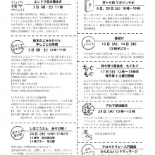 今月のイベントは少なめですが、なんにも用事がなくてもお顔を見せに立ち寄ってくださったらうれしいです。