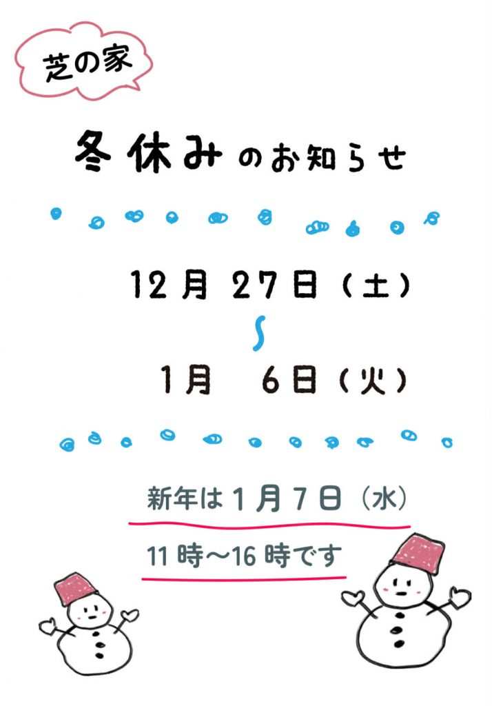 ————————————– 芝の家の冬休み 25/12/27(土)〜26/01/06(火)
